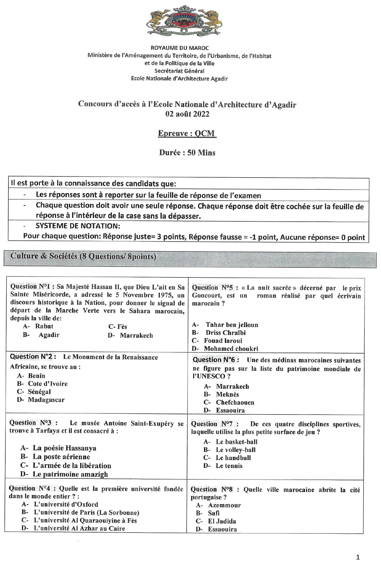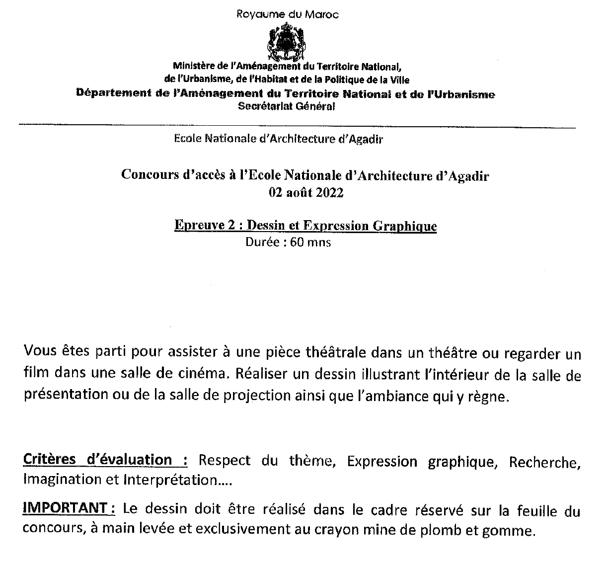 Concours d'accès à l'Ecole Nationale d'Architecture d'Agadir