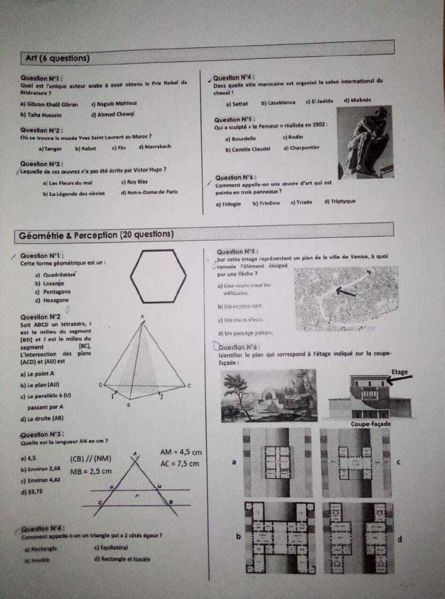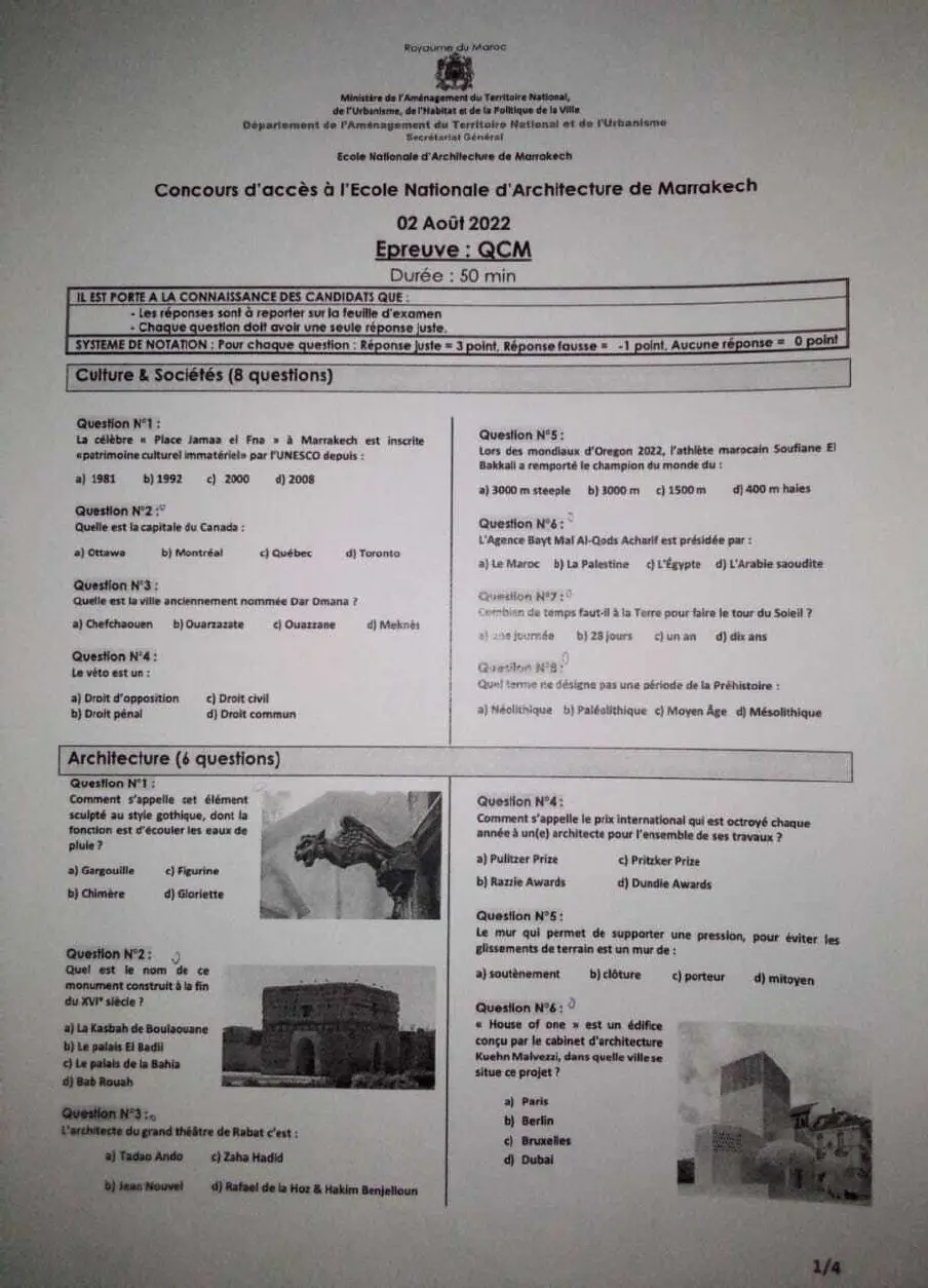 Tarik Concours d'accès à l'Ecole Nationale d'Architecture de Marrakech Date : 02 Août 2022 📝 Epreuve QCM Durée : 50 Min