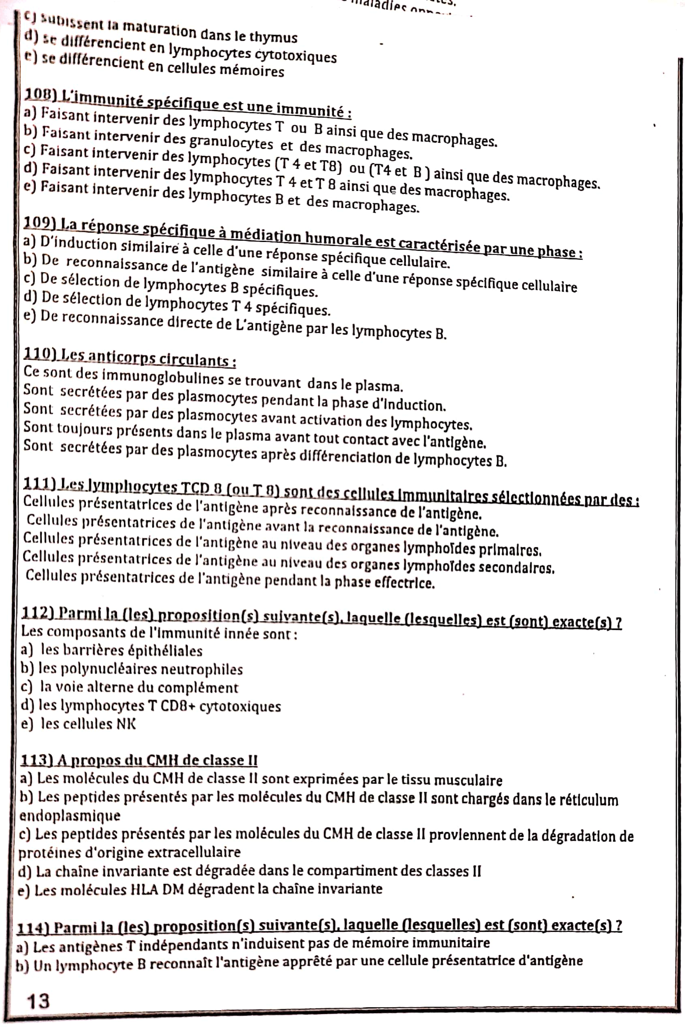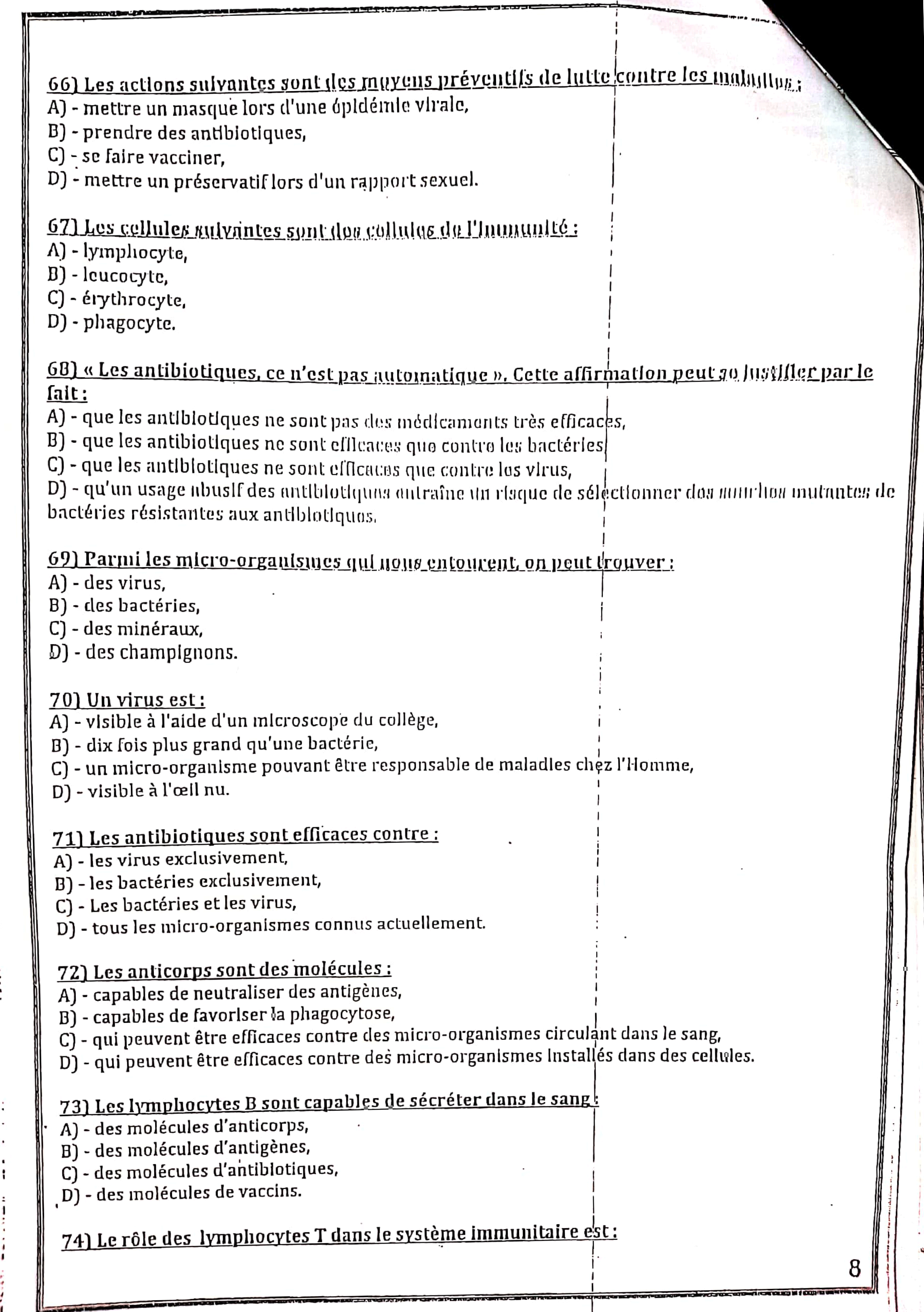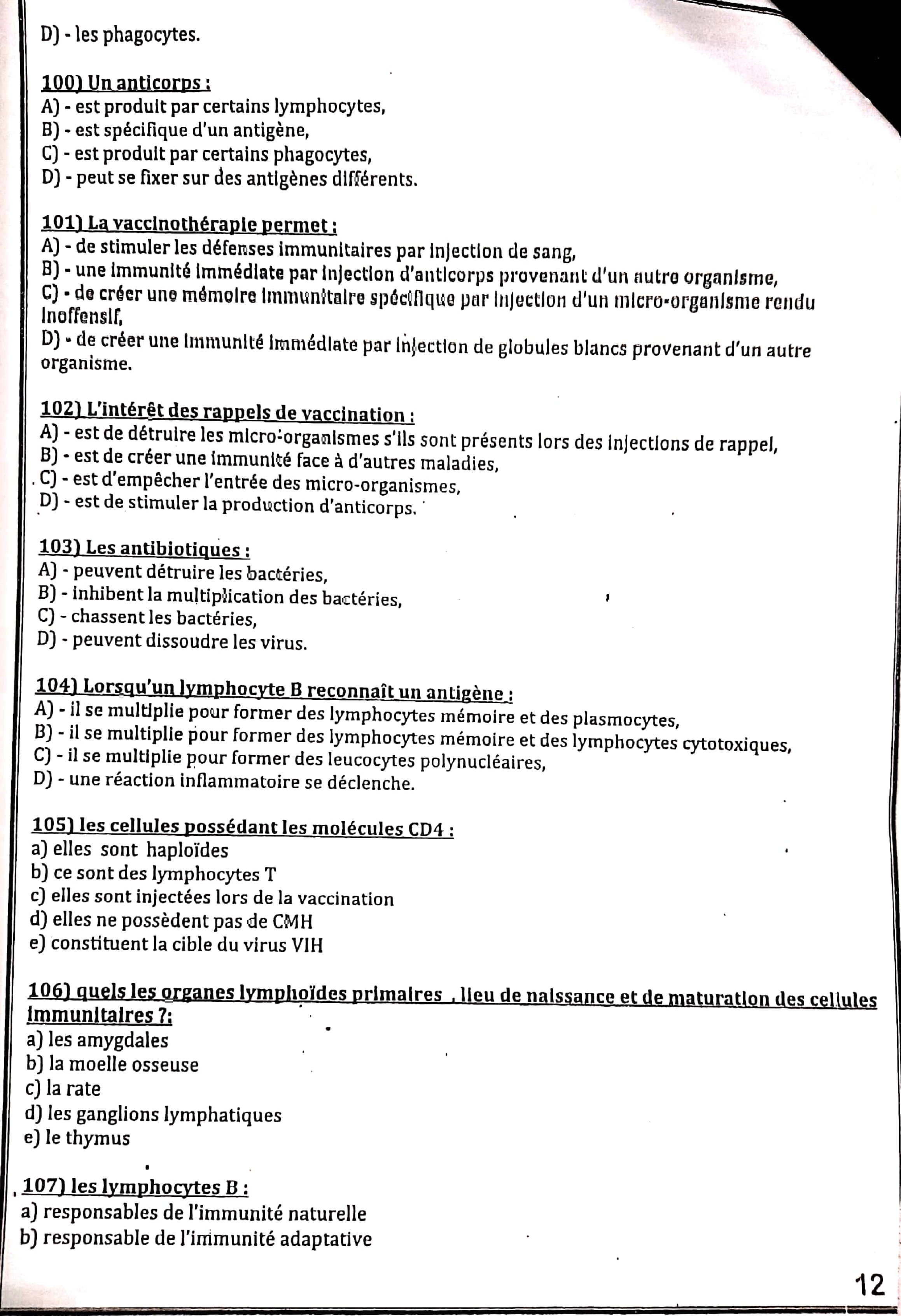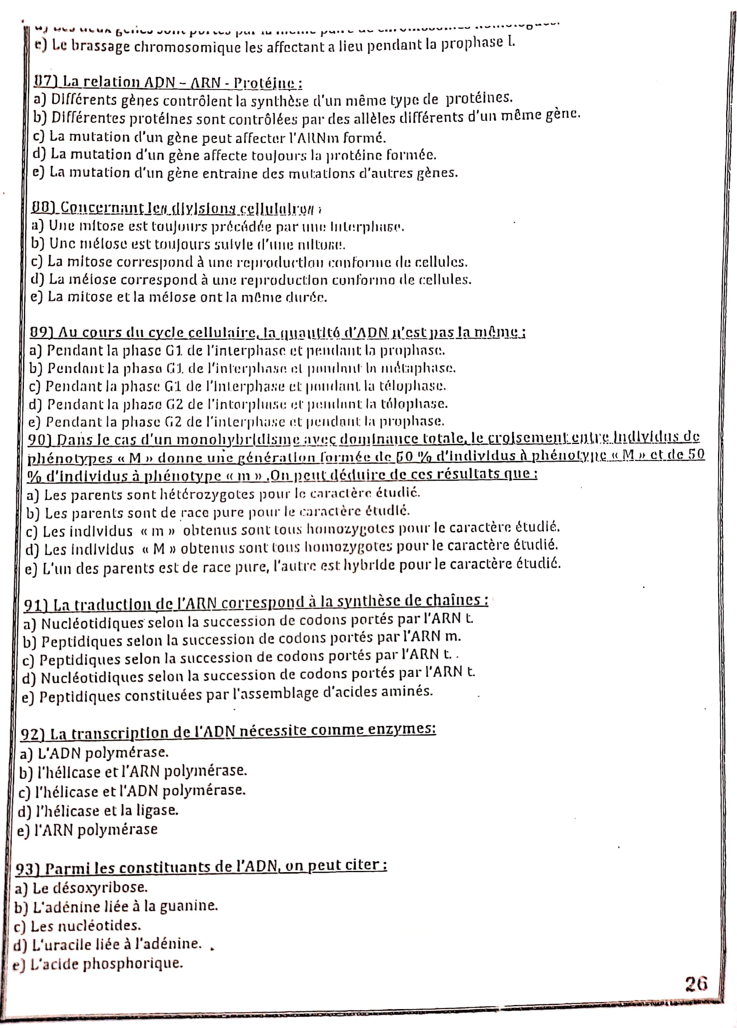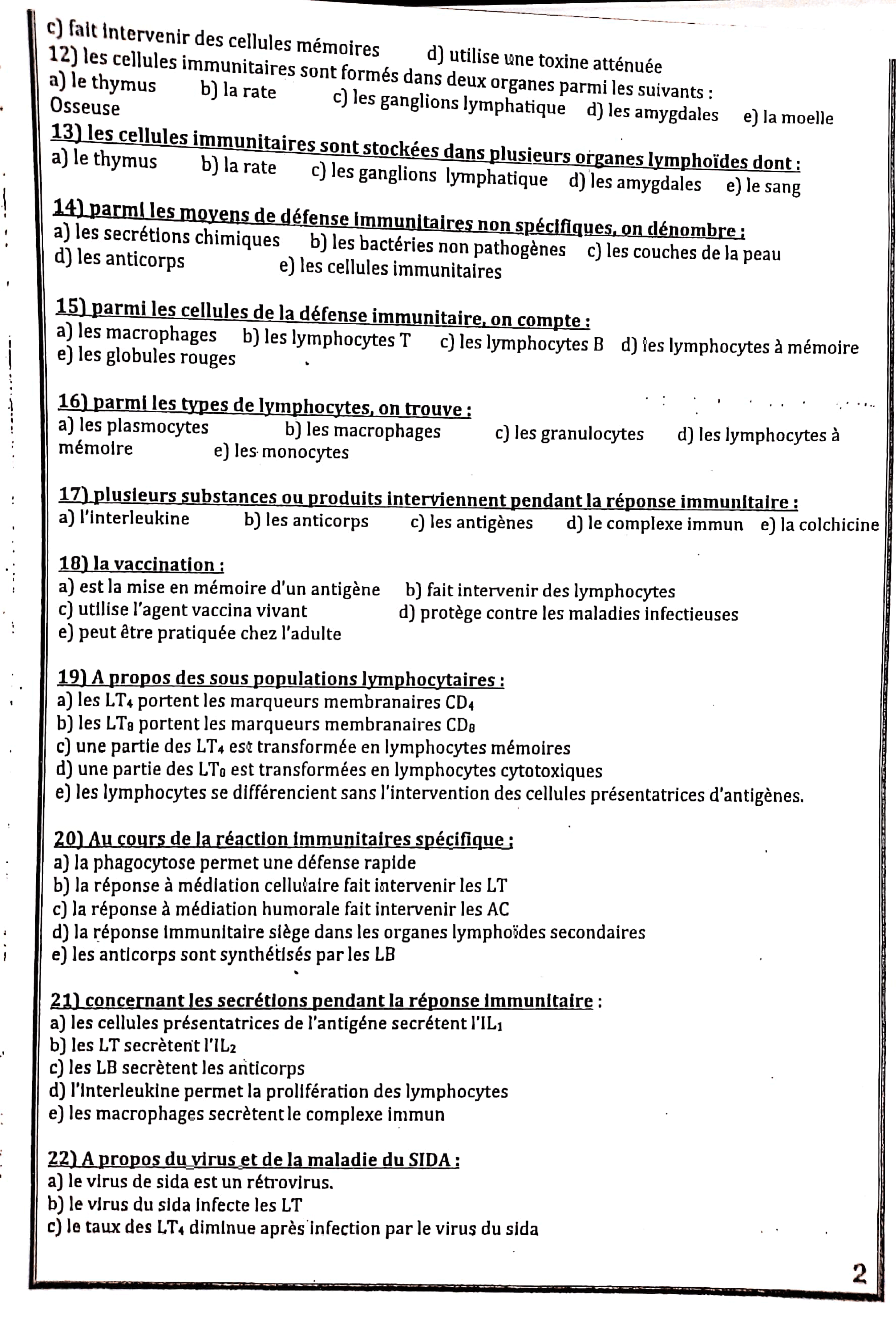 Abibou Bonjour à tous ! Je vous propose un ensemble de questions d’entraînement pour la composante SVT du concours de médecine (SCM). Ces questions sont soit basées sur des sujets précédents, soit conçues pour imiter le format et le niveau des épreuves officielles. L’objectif est de s’exercer sur des types de questions similaires afin de mieux se préparer pour le concours. ⚠️ La correction n’est pas fournie. Bon entraînement et bonne chance à tous !