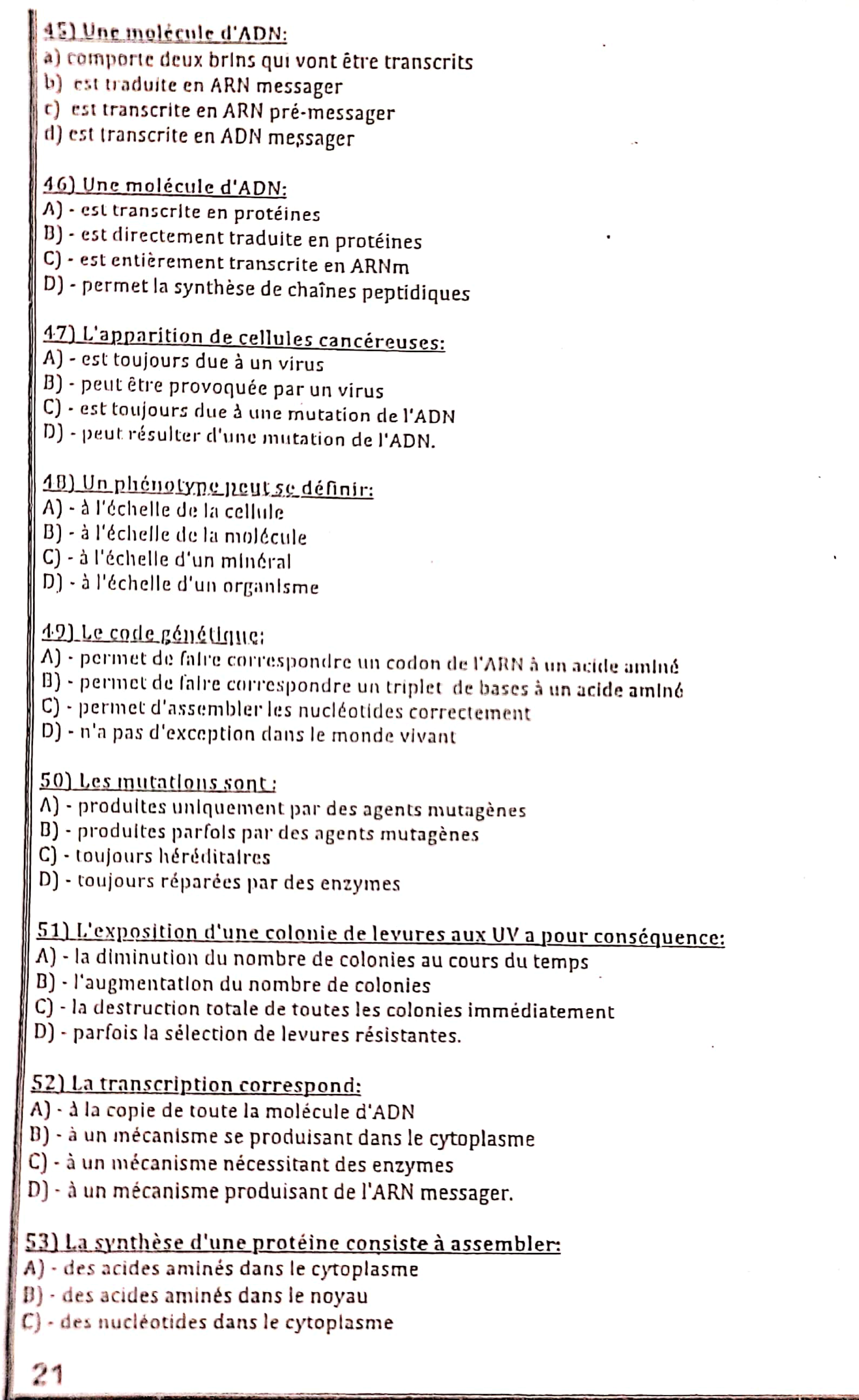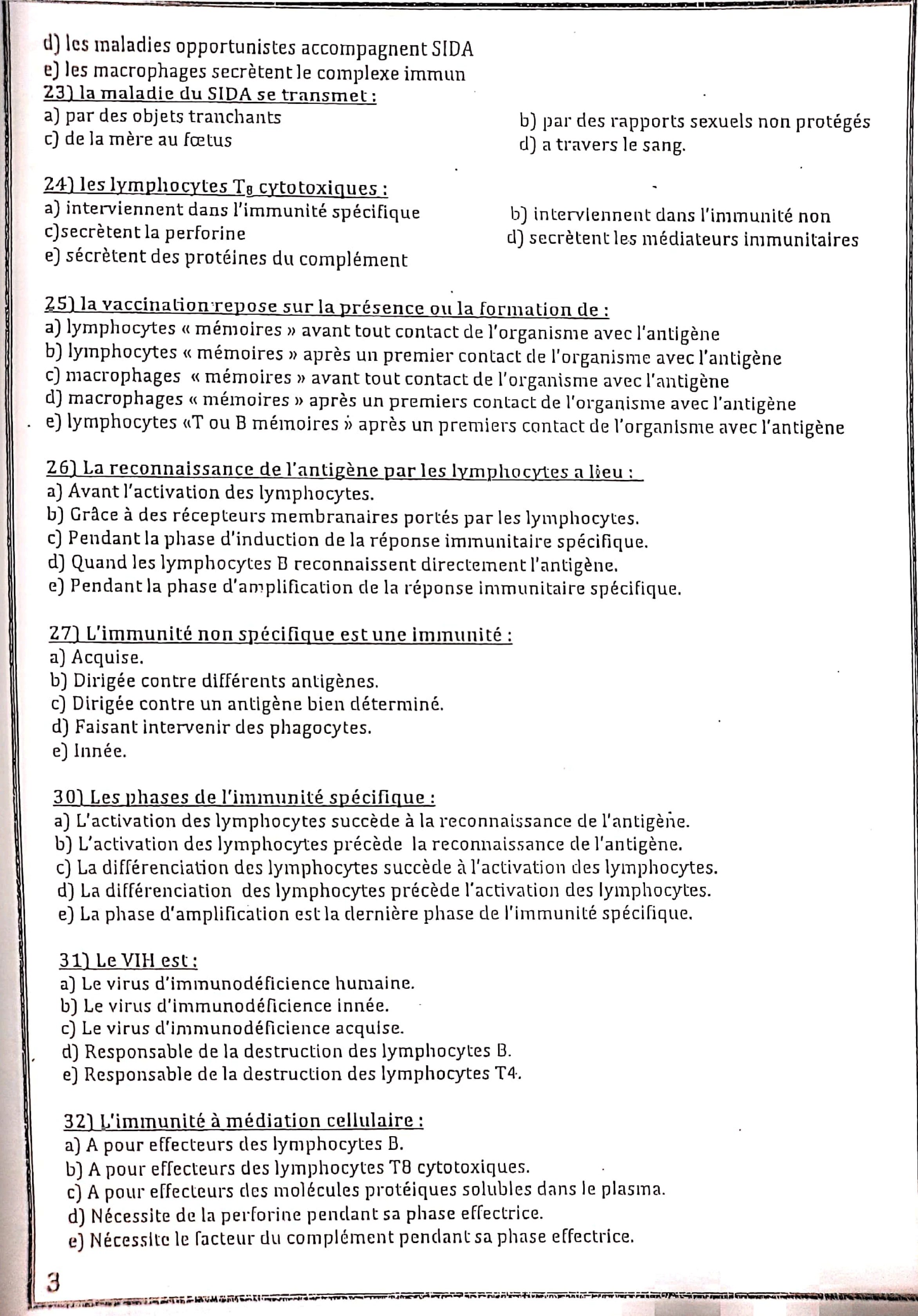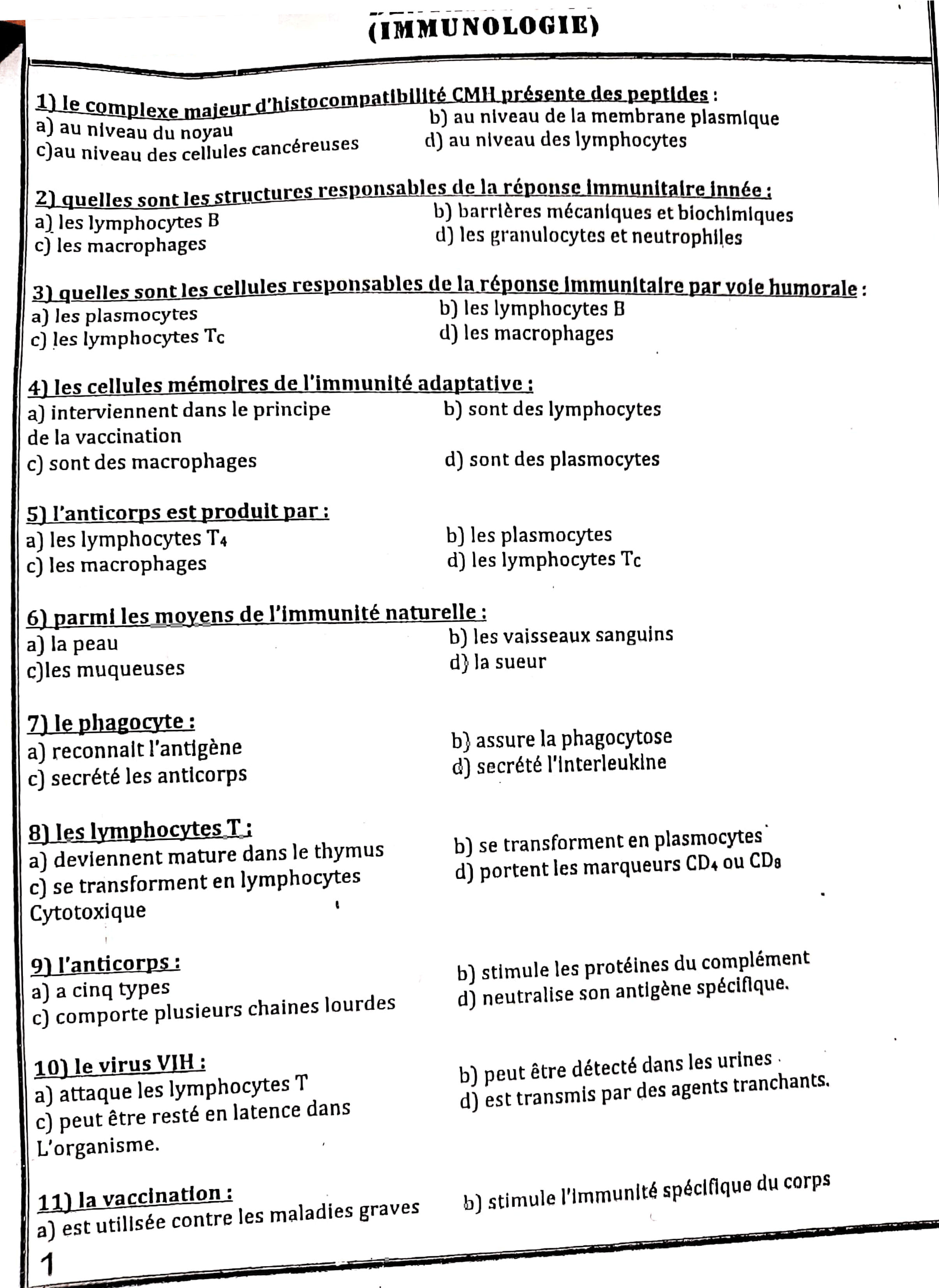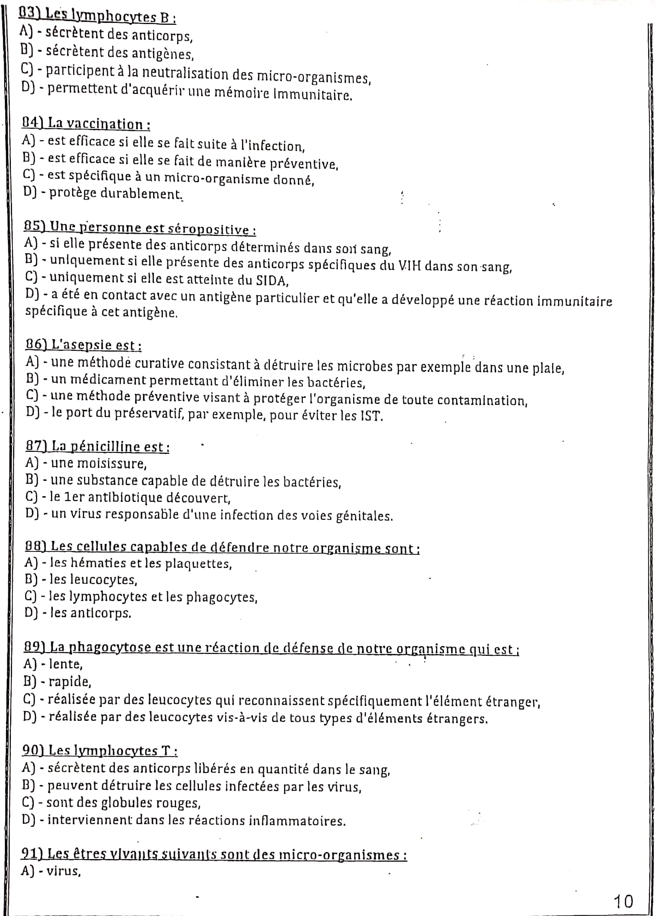 Abibou Bonjour à tous ! Je vous propose un ensemble de questions d’entraînement pour la composante SVT du concours de médecine (SCM). Ces questions sont soit basées sur des sujets précédents, soit conçues pour imiter le format et le niveau des épreuves officielles. L’objectif est de s’exercer sur des types de questions similaires afin de mieux se préparer pour le concours. ⚠️ La correction n’est pas fournie. Bon entraînement et bonne chance à tous !