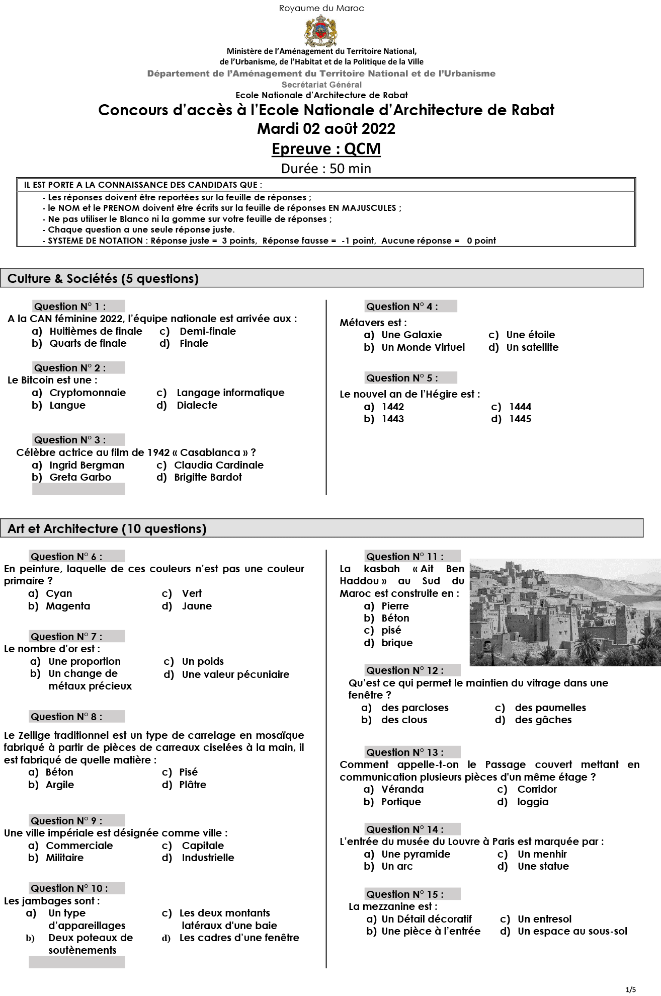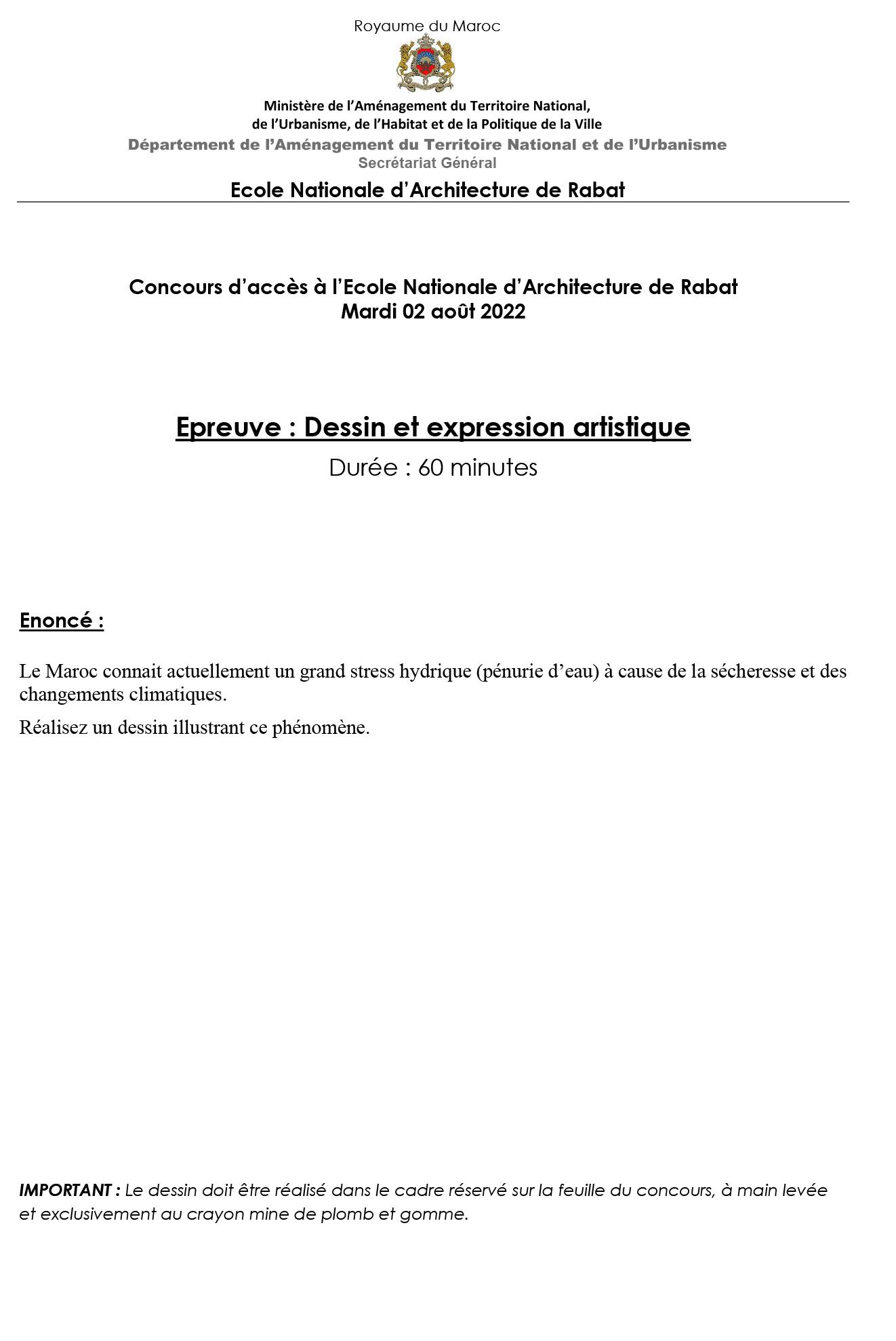 Concours d’accès à l’Ecole Nationale d’Architecture de Rabat