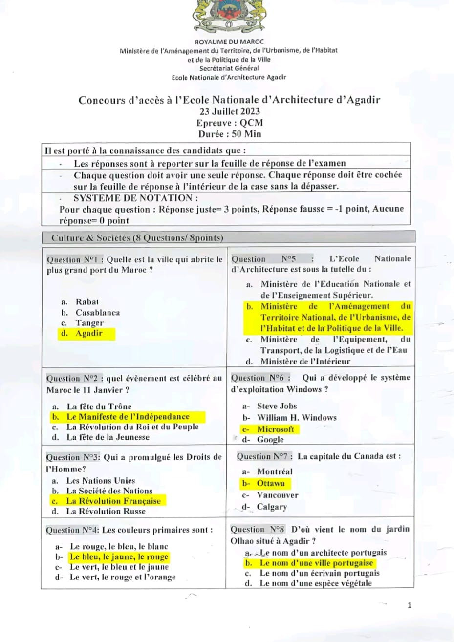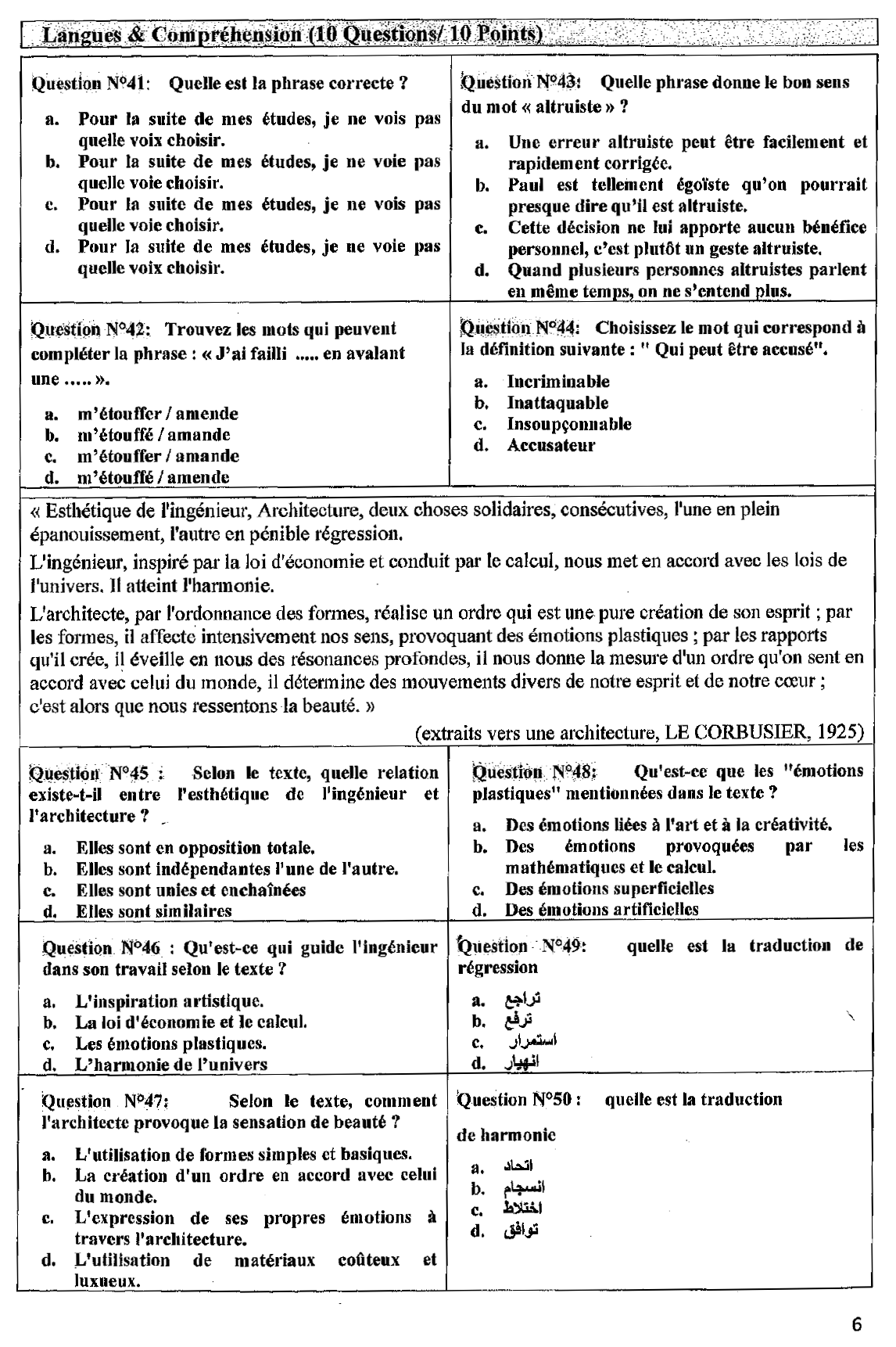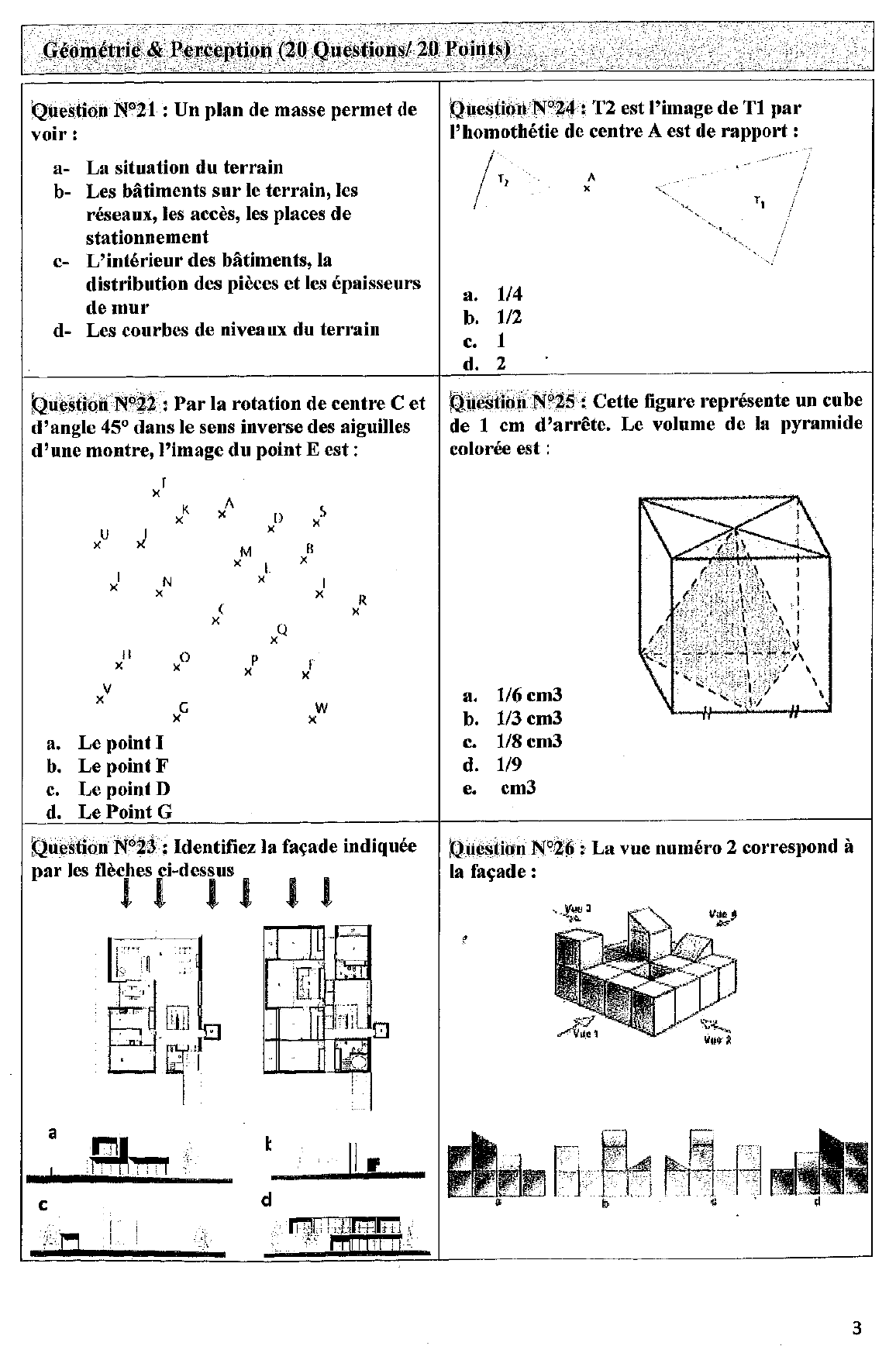 SoufianeJ Epreuve : QCM Durée : 50 Min Culture & Sociétés (8 Questions) Art & Architecture (12 Questions) Géométrie é Perception (20 Questions) Langue & Compréhension (10 Questions) -
