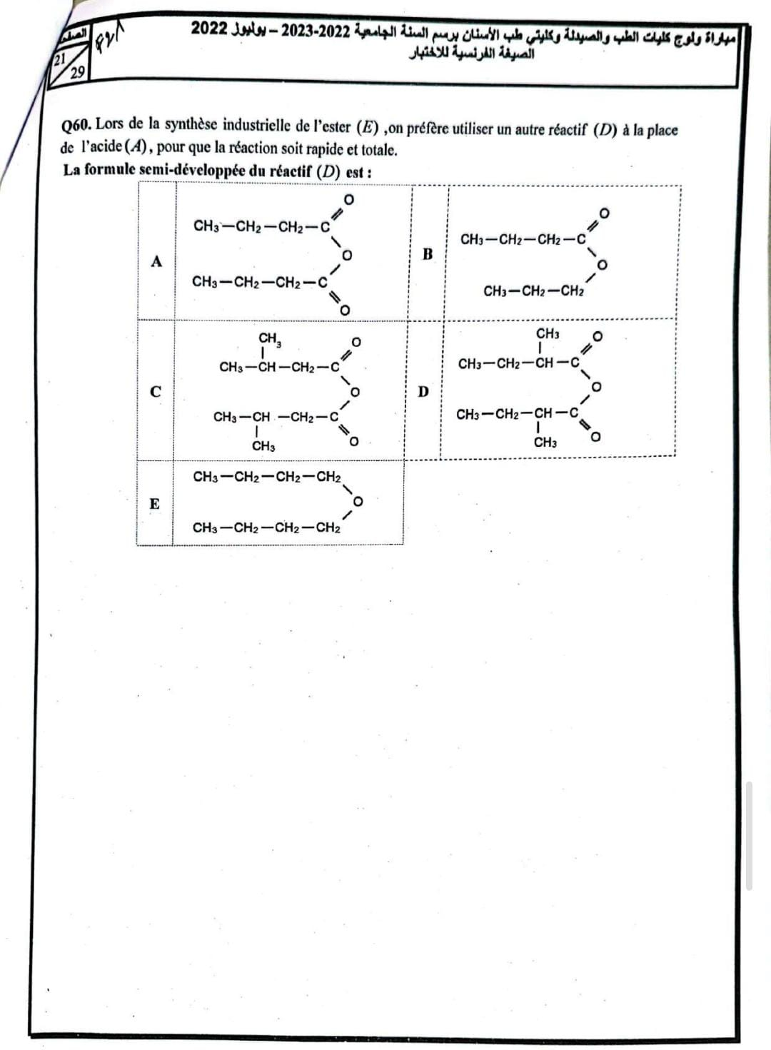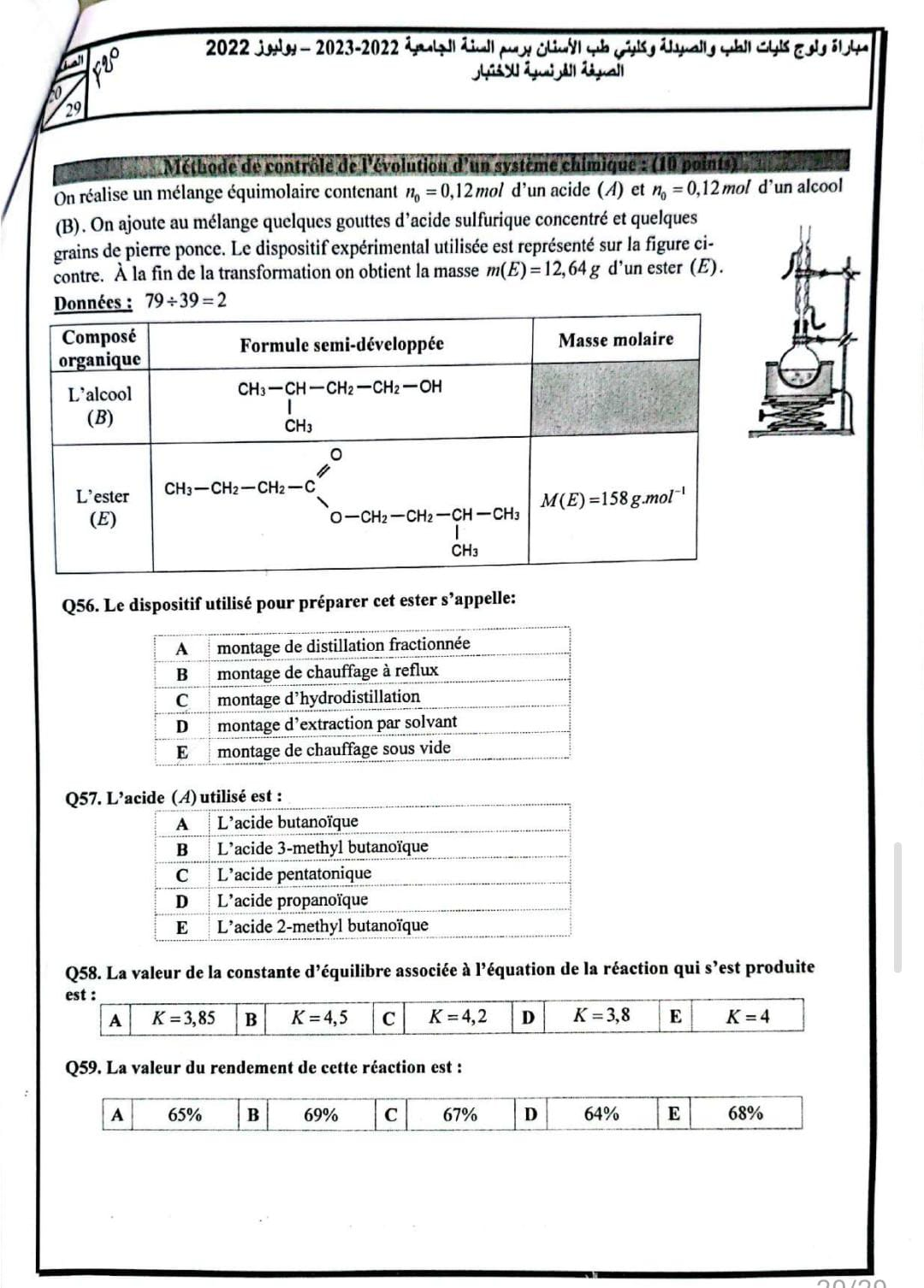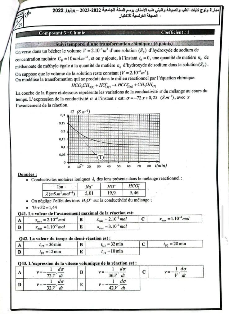 Epreuve Chimie FMP/D 2022