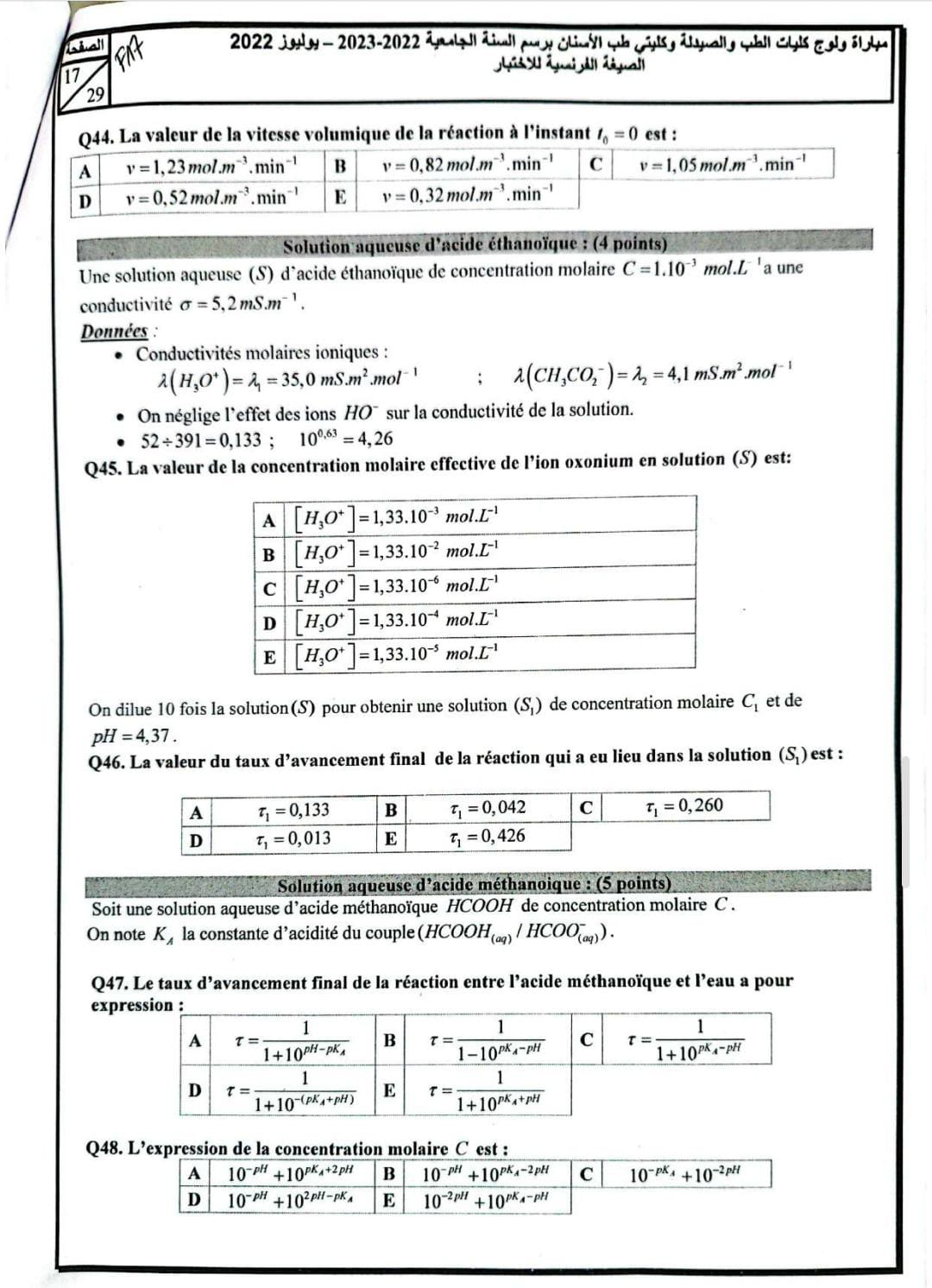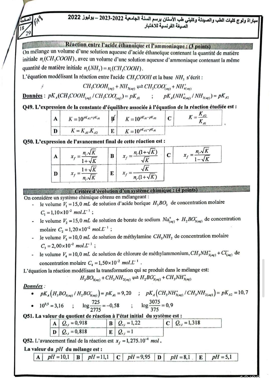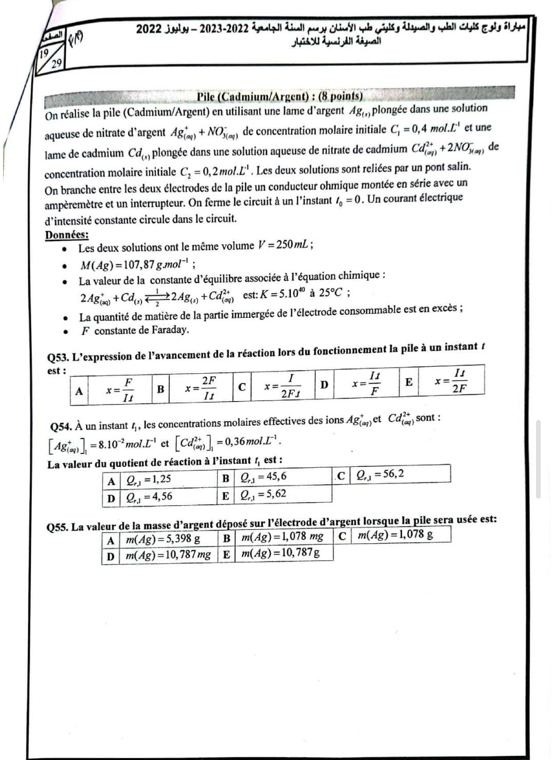 Epreuve Chimie FMP/D 2022
